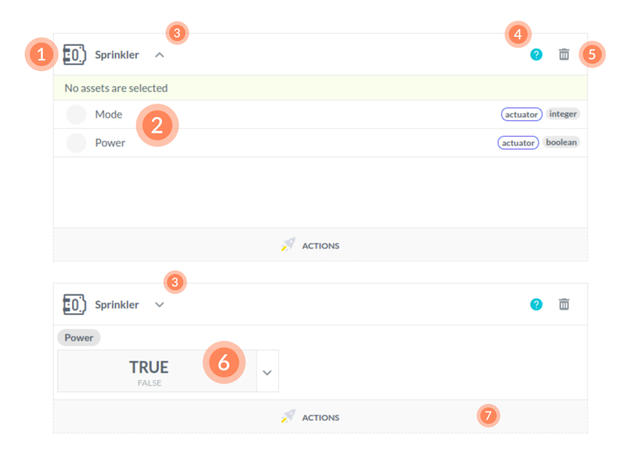 Shrink / Expand toggles the size of the component. Shrinking components lets you create more space on the screen and presents you the whole rule at a glance. With device component, state is toggled to shrunken after the asset is selected to save space. If you need to change the actuator or the virtual, you will need to expand the component again.