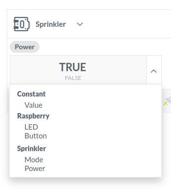 Using a device as an action lets you send commands to actuate physical devices and set virtual asset states. The sent value can either be a constant, or the state of another asset.