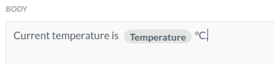 This makes a binding to Temperature asset’s state inside the message, so that whenever the rule is executed, Temperature