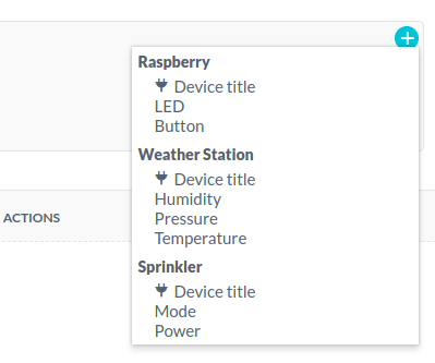 icon.A list with all devices in the ground is shown, along with all of their assets and their metadata (Device title). After selecting an item from the list, it is inserted into the message as follows: