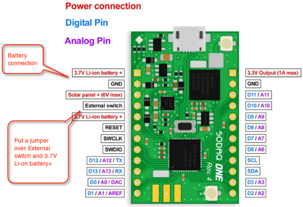For more information on using a battery, please visit http://support.sodaq.com/sodaq-one/battery/.